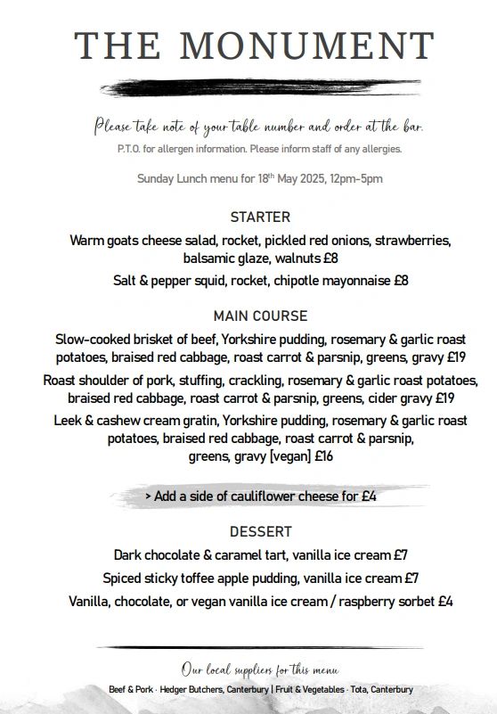 Below you'll see some sample menus from May 2025 but please note that we make weekly changes to our menus so do give us a call if you ne